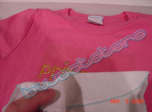 that no glue will seep onto back of shirt (can use a towel, cloth,