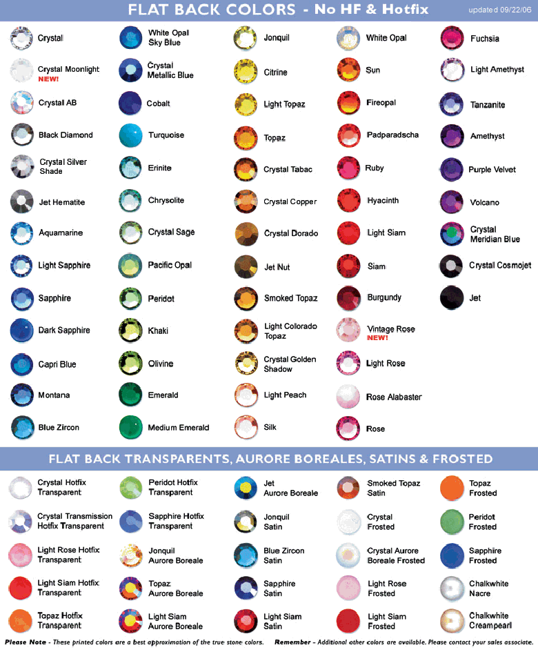 Swarovski Flatback Rhinestone Color Chart ***Please note that colors may vary depending on your computer monitor settings***
